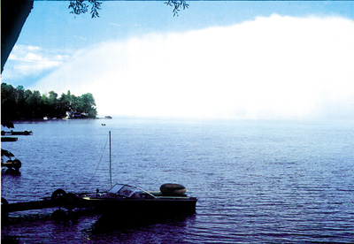 One morning we looked out on the lake and all we could see was white. Once outside, it really looked like big clouds just sitting on the water, from Camp Gordon to the north end of Waneta. We rowed out into them, it was cold, like fog. Even clouds need a place to rest, and they choose Waneta Lake. Who wouldn't. Dave Stevens, Hinsdale, Illinois. |